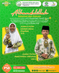 Selama 6 tahun saya mondok di BALQIS, saya mendapatkan banyak sekali pelajaran dan ilmu yang bermanfaat bagi masa depan saya.Ustadz/ah nyaa juga sangat baik dan sabar dalam membimbing kami dalam belajar banyak sekali ilmu. Lingkungan yang sangat mendukung pula serta teman teman yang baik dan perhatian membuat saya nyaman untuk mondok disana. Semoga BALQIS jogja menjadi sekolah yang sekses untuk kedepannya